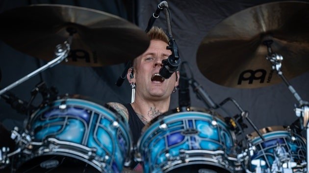 Brann Dailor Back to the Beginning performance on drums with Mastodon during a live concert.
