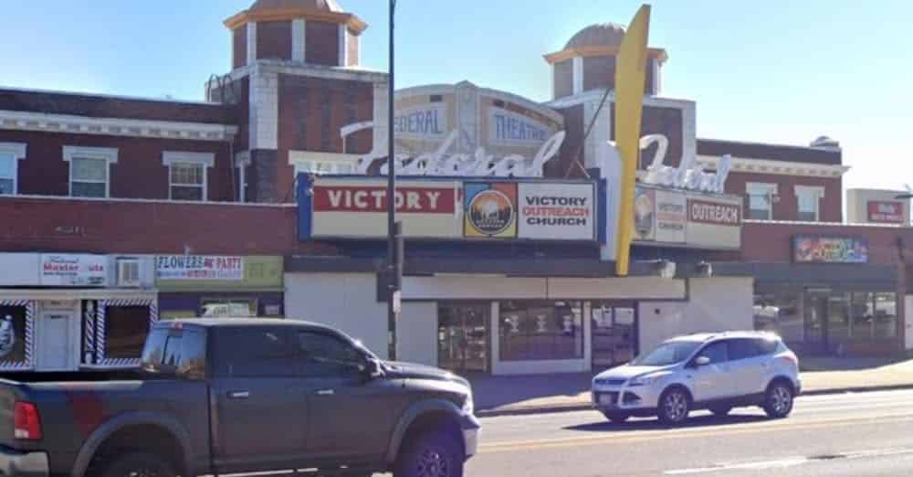 Historic Federal Theatre Denver exterior photo of the building and marquee before reopening