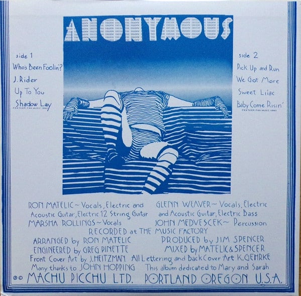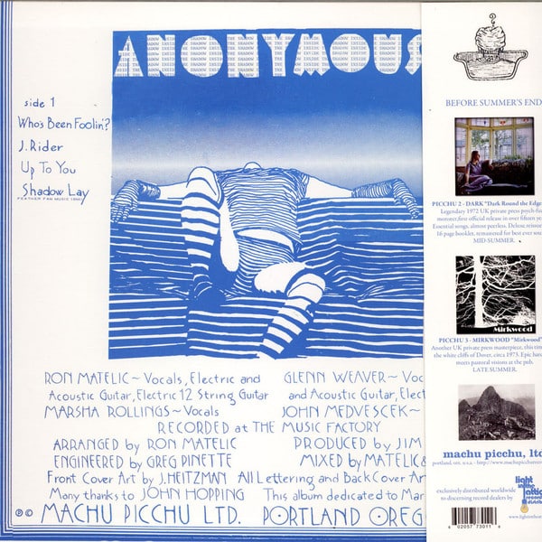 – Sleeve notes from Aaron Milenski (co-author of the essential reference guide The Acid Archives), and recollections from Ron Matelic, Anonymous’ visionary songwriter.