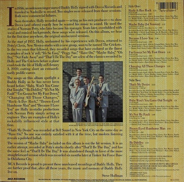 Special thanks to Norman Petty, Bill Griggs and John Levin for their valuable help regarding this release.