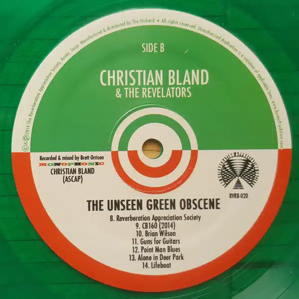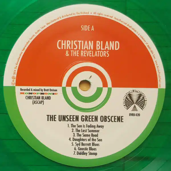 Translucent green vinyl mixed in Mono. There are two versions of this record. Standard none numbered 160 gram translucent green version (this release) and a 180 gram limited to 500 hand numbered opaque green marbled version that has an autographed insert.