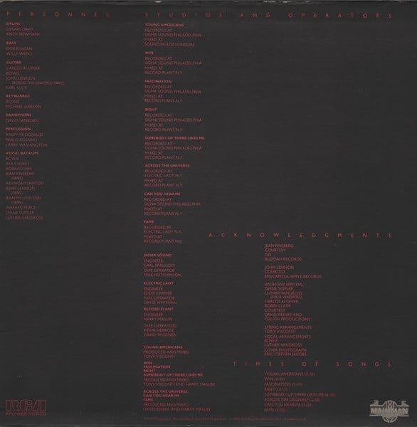 B4: ©1975 Mainman /John Lennon/ Ceilidh Prod., Inc. (Published By Mainman – ASCAP; Lennon Music – BMI; ATV Music Corp. – BMI; Ceilidh Prod., Inc. -ASCAP)
