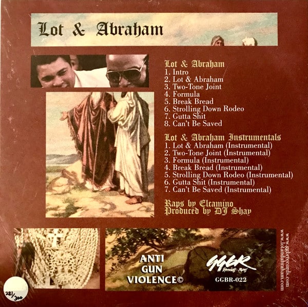 Elcamino & DJ Shay’s “Lot & Abraham” project on limited edition black vinyl. Includes instrumental versions exclusive to vinyl edition only. Only 300 pressed.
