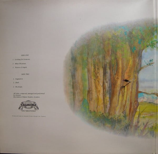 Charisma Scroll logo on gatefold inside. The subsequent edition came with a [url=https://www.discogs.com/Genesis-Trespass/release/2102072]Mad Hatter logo[/url] instead.