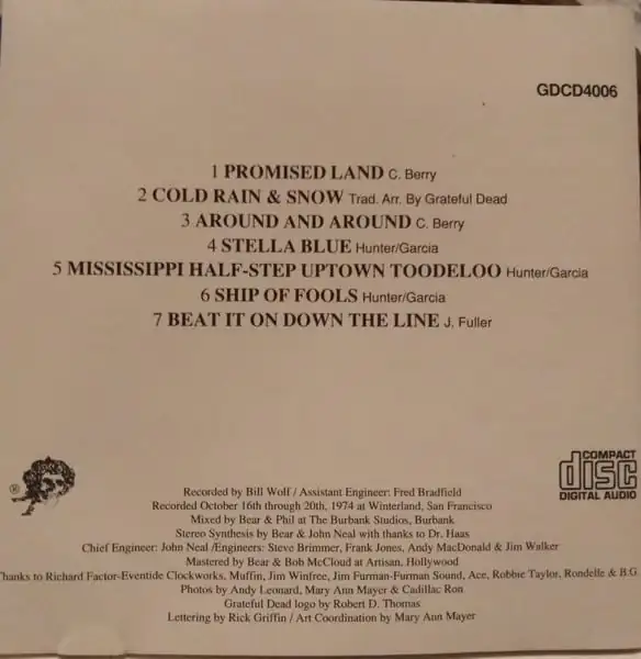 Phonographic Copyright (p) Grateful Dead Records