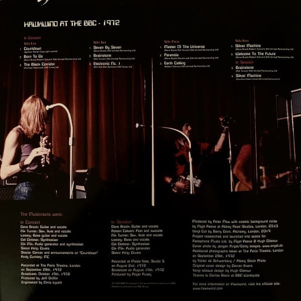 Tracks A1 – D2: Recorded at The Paris Theatre, London on September 28th, 1972. Broadcast October 14th, 1972. Stereo.