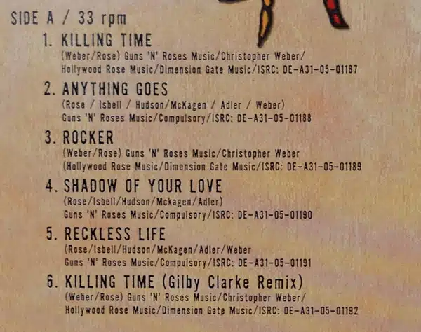 Published by Guns ‘N’ Roses Music: A1 to B7