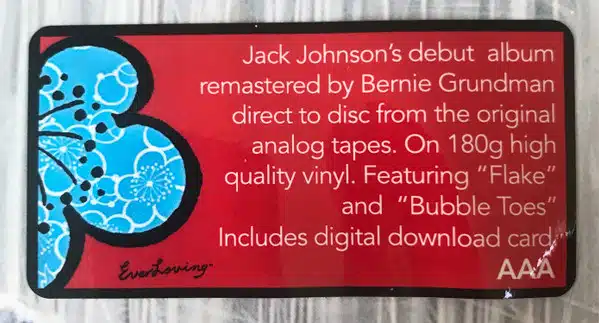 Jack Johnson’s debut album remastered by Bernie Grundman direct to disc from the original analog tapes. On 180g high quality vinyl. Featuring “Flake” and “Bubble Toes” includes digital download card.