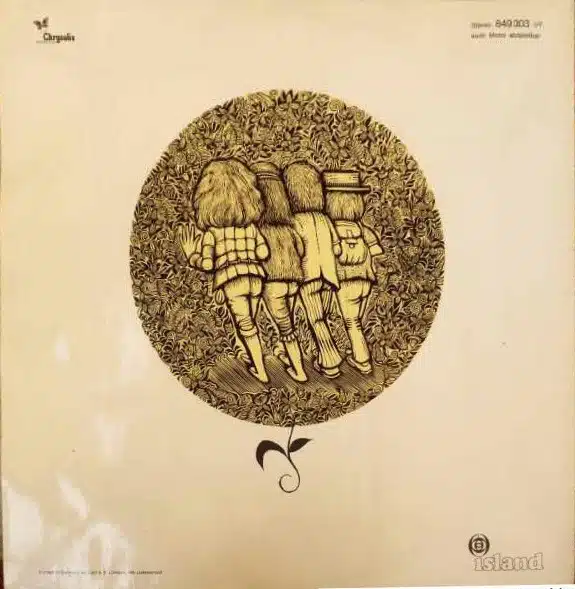 “The cover was based on ideas from Terry Ellis and John Williams and printed from woodcuts by New York graphic artist, Jimmy Grashow.”