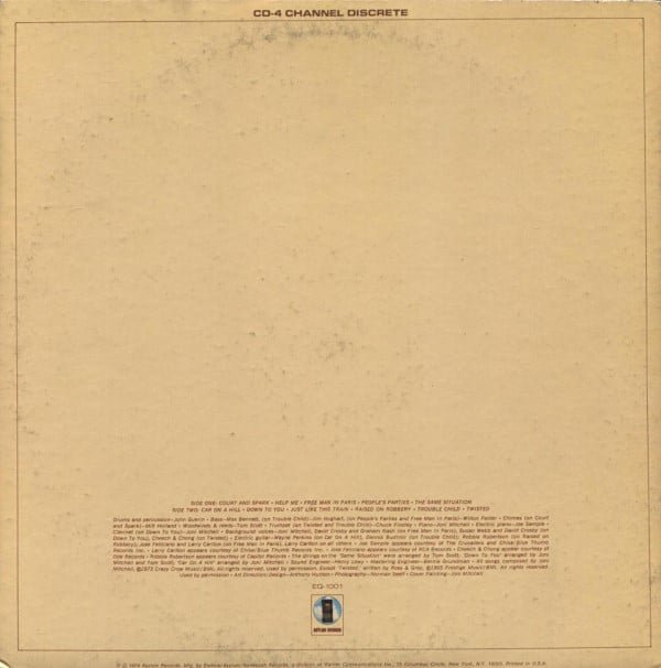 (P) (C) 1974 Asylum Records. Mfg by Elektra / Asylum / Nonesuch Records, a division of Warner Communications Inc. [address] Printed in U.S.A.