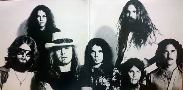 US issue; tan labels; first issue gatefold sleeve cover featured flames surrounding band, photo on back of jacket moved to front of jacket, after the plane crash. includes printed credits and tour dates sheet, MCA company logo inner sleeve and Lynyrd Skynyrd merchandise promo sheet (t-shirts and jewelry)