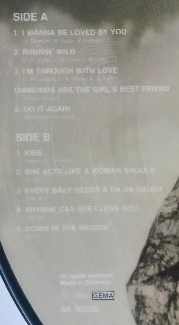 Also released in a [url=http://www.discogs.com/release/3271883]non-picture disc edition[/url] with the same tracklisting and front picture, but with the main title as “I Wanna Be Loved By You”.