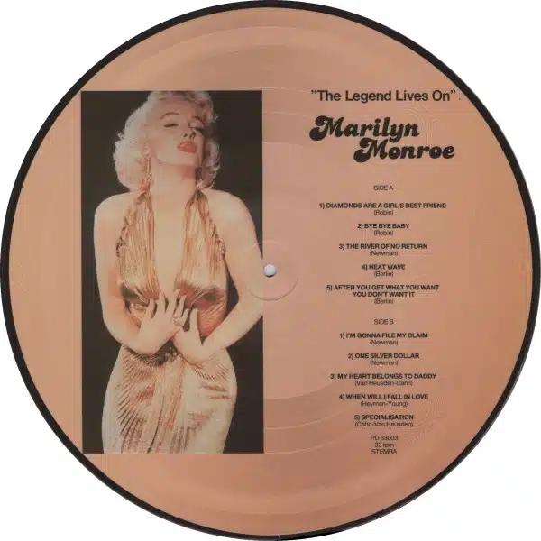 Comes in a clear plastic sleeve with a Picturediscs “Everlasting Marilyn Monroe Calendar” paper insert.