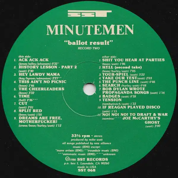 ACTUAL “BALLOT RESULTS” (from ballots received by SST Records between January and April of ’86 in descending order):