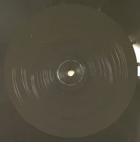 The first LP is pressed on standard black vinyl. Side A has two untitled tracks cut in parallel grooves, and has circular etchings in a 14 cm diameter area around the spindle hole.