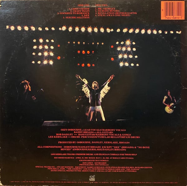 Track B2: © 1980 Ozzy Osbourne & Lee Kerslake & Randall Rhoads & Robert Daisley