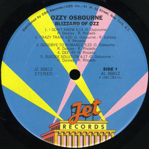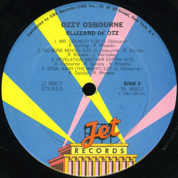 Tracks A2, B1, B3: © 1980 Ozzy Osbourne & Robert Daisley & Randall Rhoads