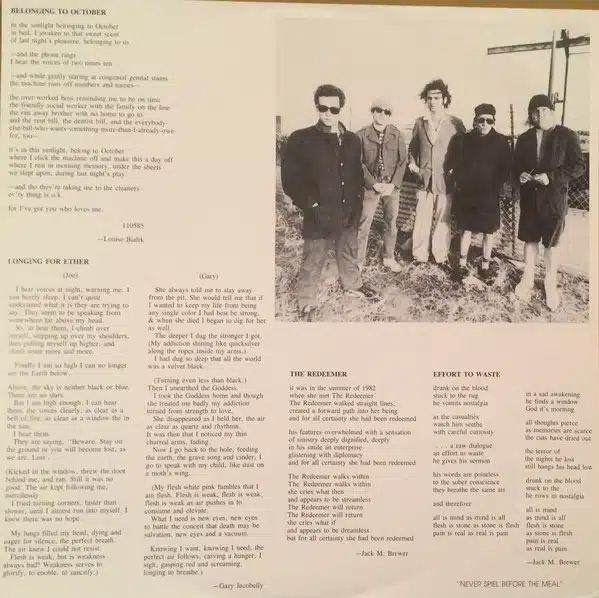 Some copies come with a six page promo packet, two glossy promo photos, and two catalogues titled “Guns Or Records? SST Survival Catalogue”.