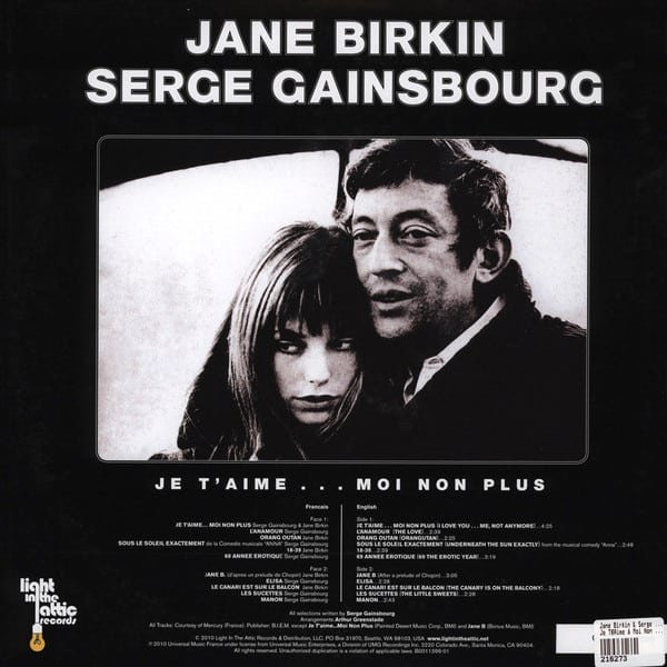 A1. Serge Gainsbourg, Jane Birkin – Je T’Aime… Moi Non Plus = I Love You… Me, Not Anymore 4:25