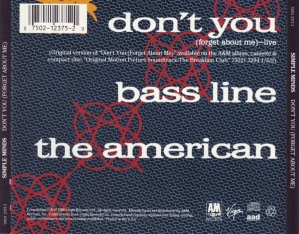 Track 1: MCA Music Publishing, a division of MCA, Inc. (ASCAP)/Music Corporation of America (BMI). Recorded live 3rd December 1985 at The Ahoy, Rotterdam. Original version of “Don’t You (Forget About Me)” available on the A&M album, cassette & compact disc “Original Motion Picture Soundtrack-The Breakfast Club” 75021 3294 1/4/2.