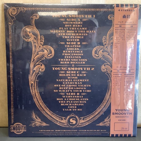Inside the new artwork are two printed innersleeves on cardboard, with the original covers for Young SmooVth 1 & 2, both front and back.