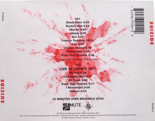 Includes a bonus disc of Suicide live at CBGB’s in 1977 plus their controversial ’23 Minutes Over Brussels’ performance.
