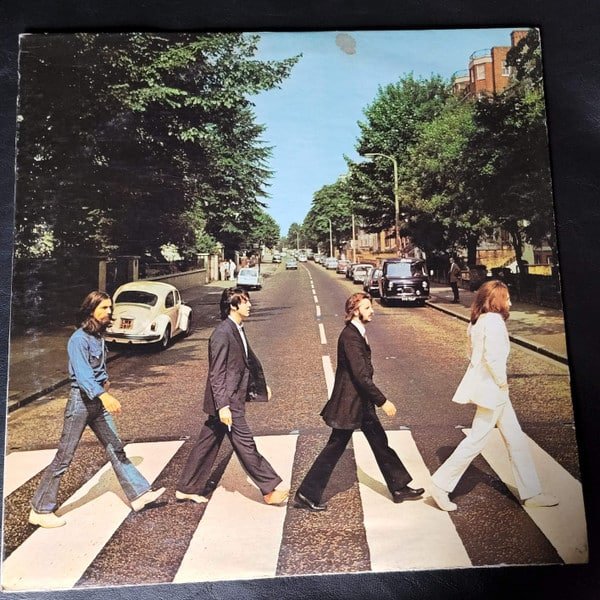All 4 crosswalk stripes continue off the bottom of the album cover onto the back cover.