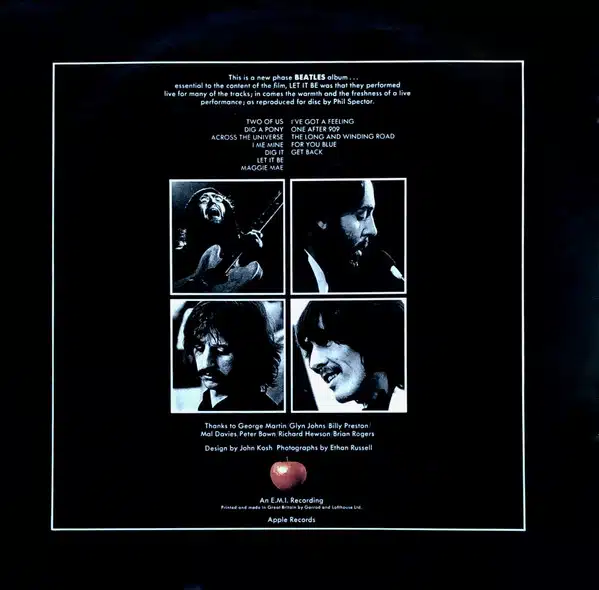 This is the first pressing and part of the early batch that was released without the box and book in a fully laminated sleeve that has a red Apple logo on the rear. Labels have a small ℗ with bigger space between “Side1/Side2” and the tracks listing, variant with big ℗ and slightly different label font and layout is the second pressing and can be found here [r=4790817]