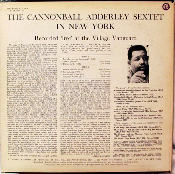 The Cannonball Adderley Sextet – In New York