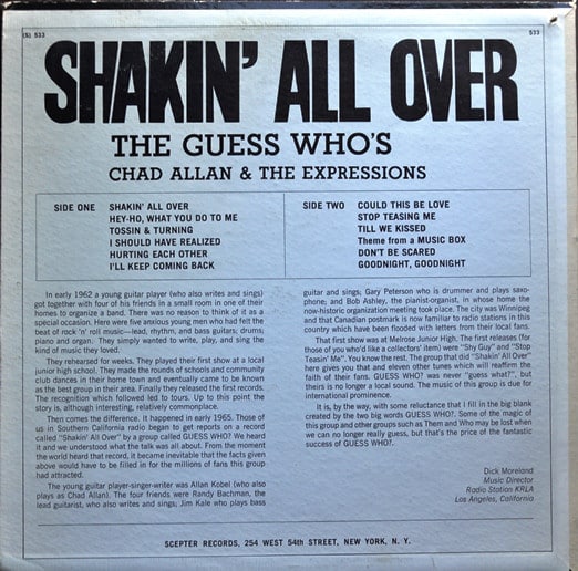 Liner notes: Dick Moreland, Music Director Radio Station KRLA, Los Angeles, California