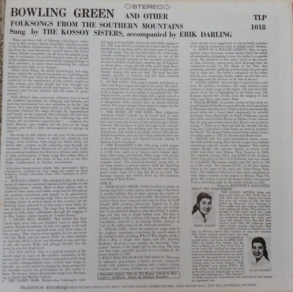 The Kossoy Sisters With Additional Banjo And Guitar Accompaniments By Erik Darling – Bowling Green And Other Folk Songs From The Southern Mountains