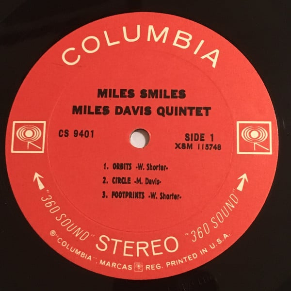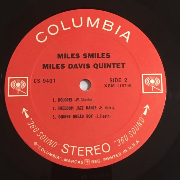 1st U.S. pressing with “2-Eye” Columbia “360 SOUND” labels. This version was pressed by Terre Haute, identified by T in runout. Similar to [r=32224713], the “walking eye” logo on labels’ rim text appears between “marcas” and “reg.”.