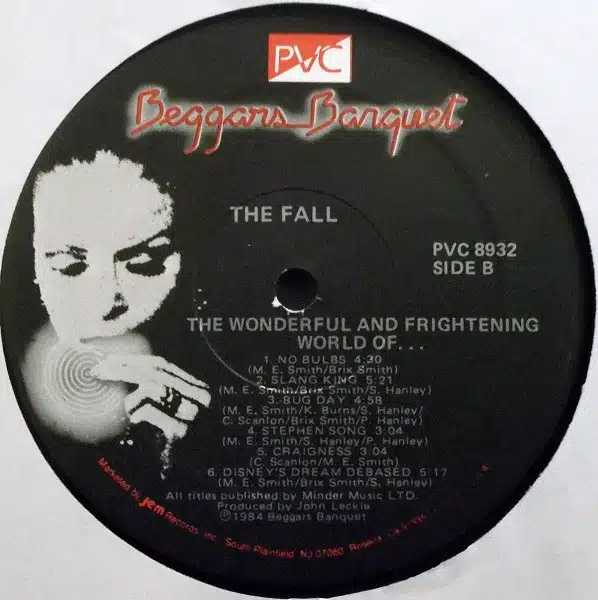 Although this is a PVC Records release, the labels use the then-current Beggars Banquet label design with a PVC logo added.