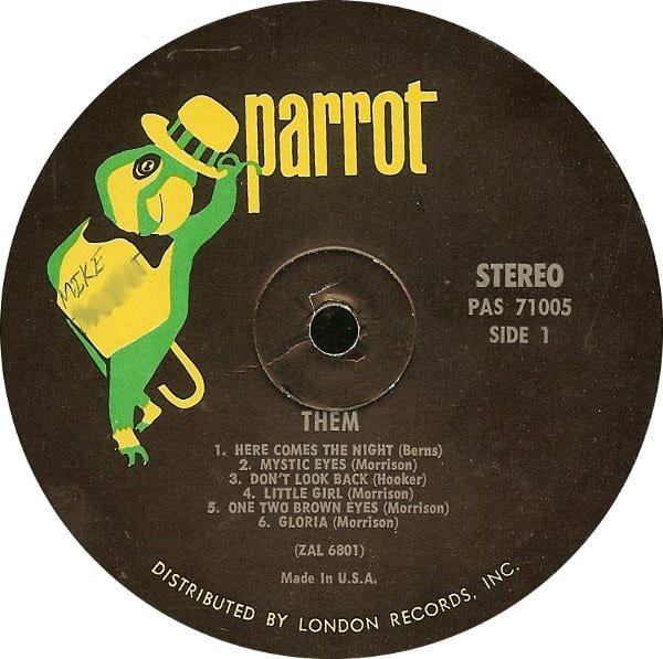 Full Stereo, front cover states “The original hit Gloria”. Rear cover panel says featuring “Here Comes The Night”.