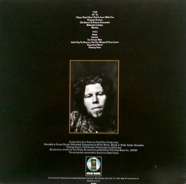 Runouts etched, [SRC logo] stamped. “E A S T” stamped on label around Side Two spindle hole. Asylum “clouds” label style with Warner logo in rim text.