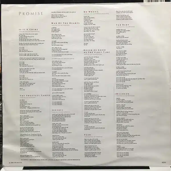 Released on November 4, 1985, in the UK and November 15, 1985, in the US, Promise soared to the number one spot on album charts in both countries. It went on to achieve quadruple-platinum certification in the United States, confirming its widespread appeal.